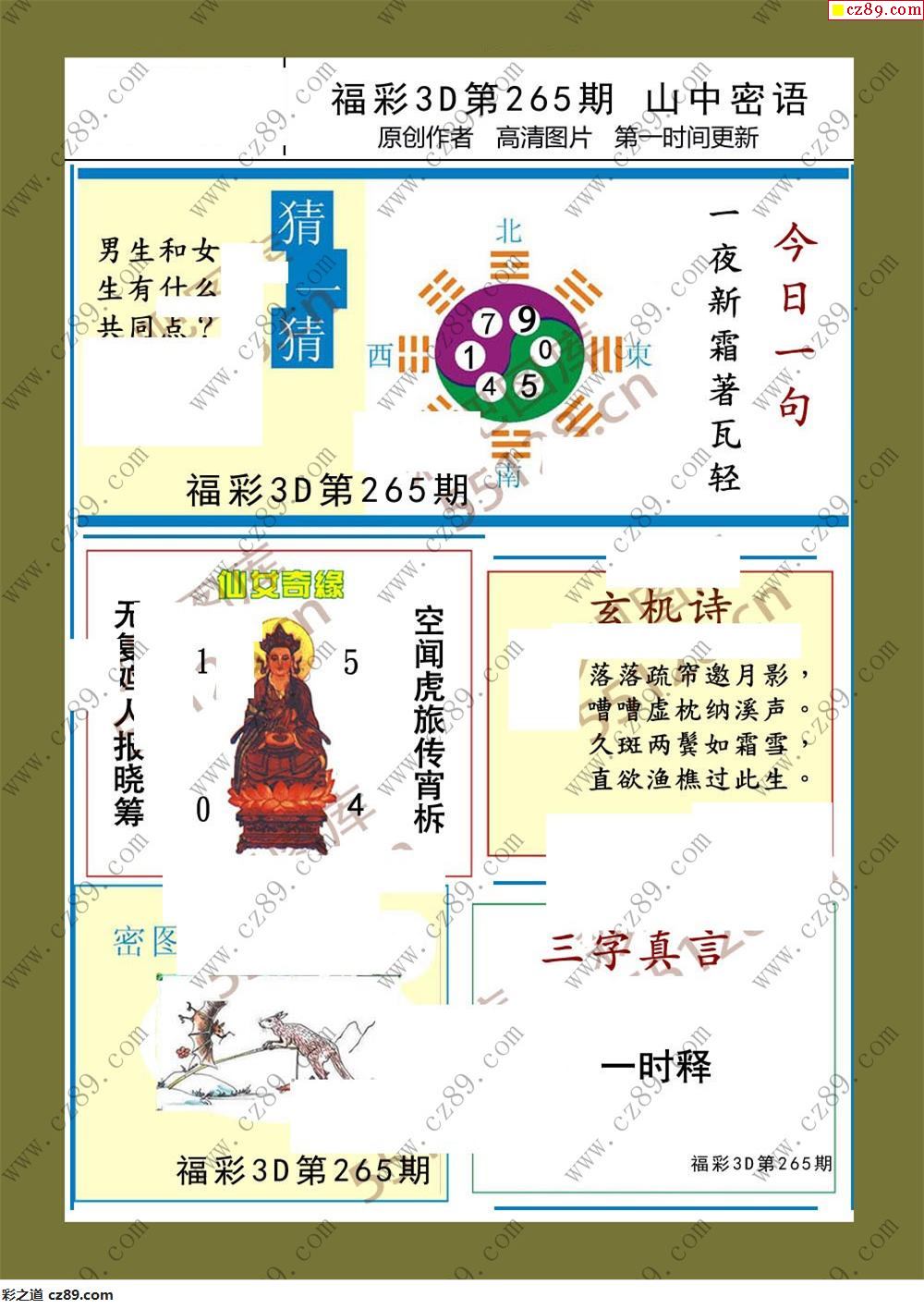 今日福彩3d字谜-今晚3d开机号试机号-3d最精准独胆王-3d专家预测-今晚精准预测三注