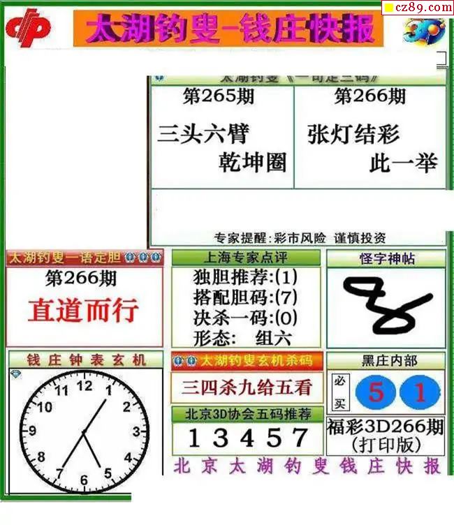 钱庄快报2025266期3d图谜