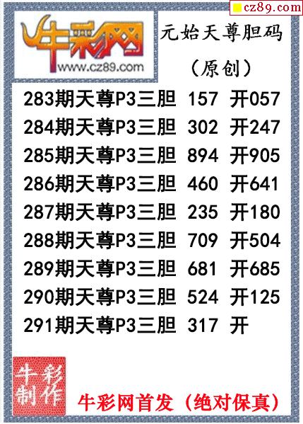 > 元始天尊胆码图291期体彩P3图谜(原创)