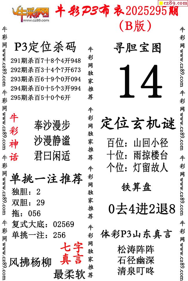 牛彩P3布衣25年295期AB版图谜(精华版)